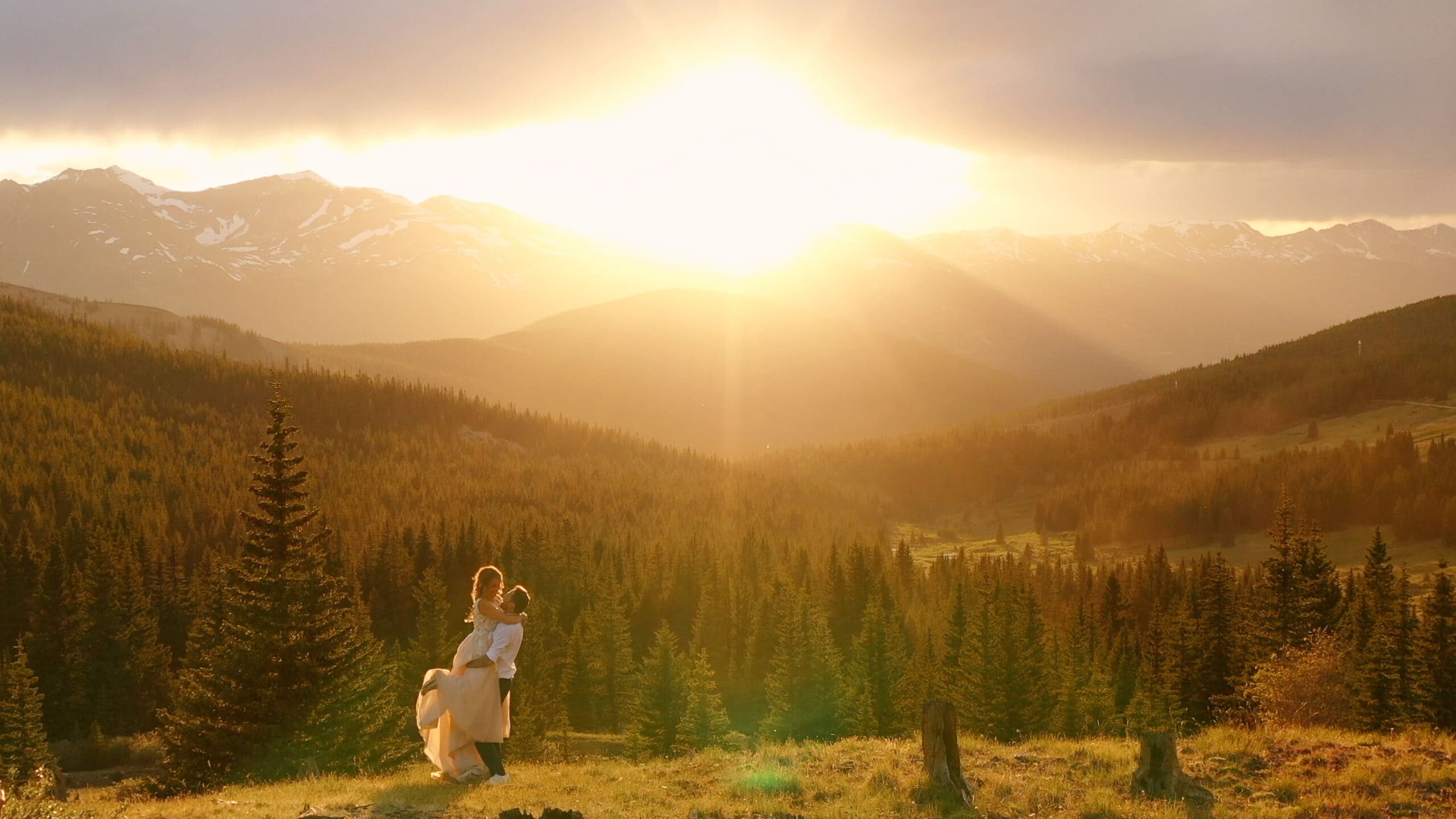 After a few hours rest, we filmed Shayna and Josh getting ready at their little mountain cabin they had rented, and then they shared a charcuterie board on the deck overlooking the river. We rounded out the night by driving to the top of a mountain pass for sunset photos and celebrating with cake and champagne. It truly was such a special day with two of the kindest people we’ve ever met!